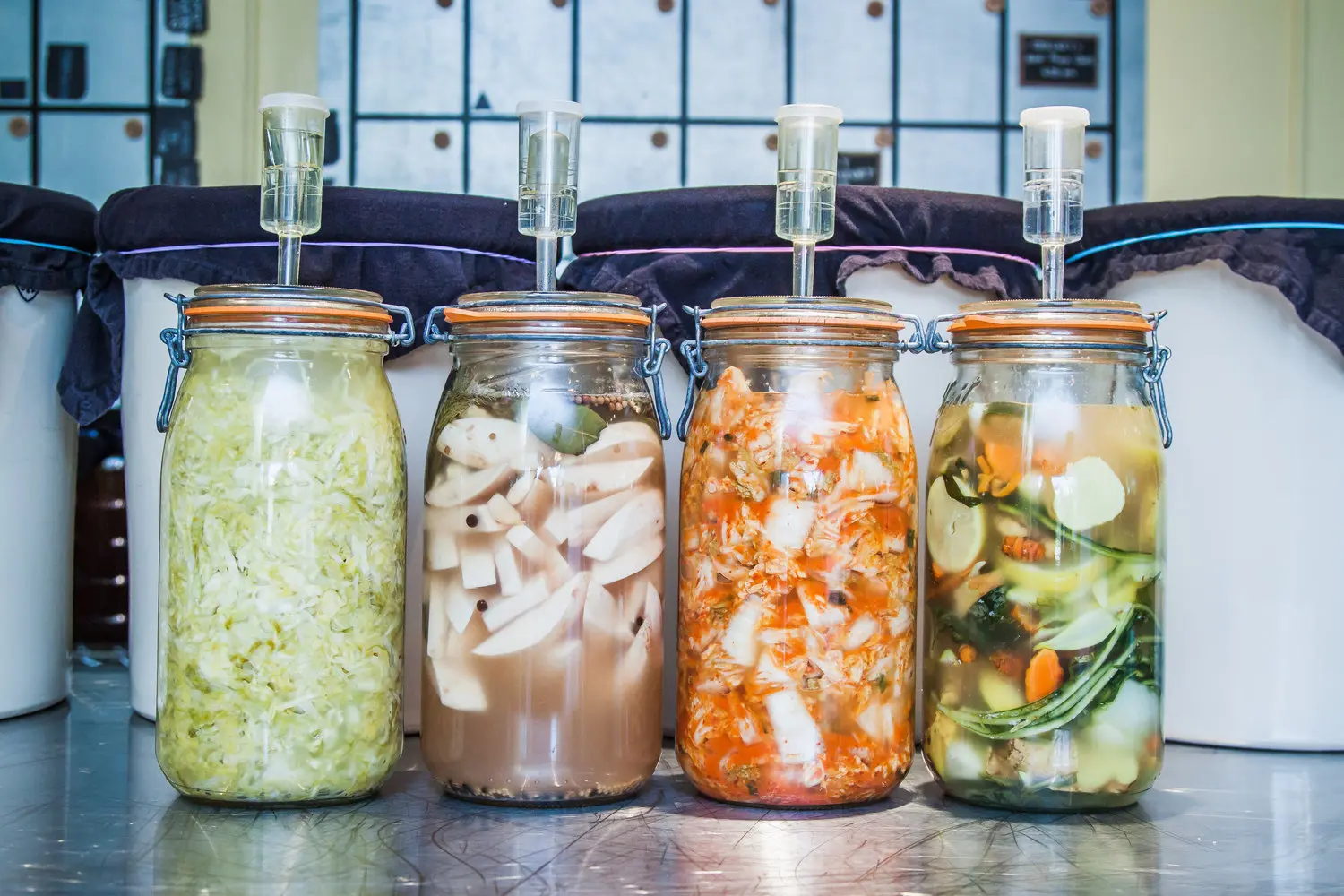 Ejemplos: chucrut, kimchi, kéfir, kombucha , miso sin pasteurizar, encurtidos lactofermentados.